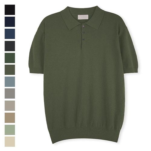 남자 여름 셀럽 버튼카라 린넨 반팔 니트티 SG-KNH-Q010-카키