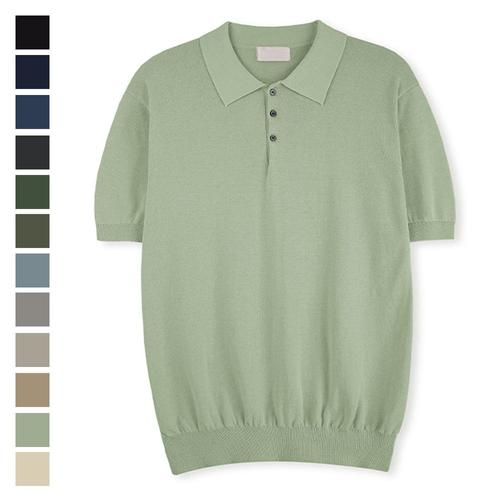 남자 여름 셀럽 버튼카라 린넨 반팔 니트티 SG-KNH-Q010-민트