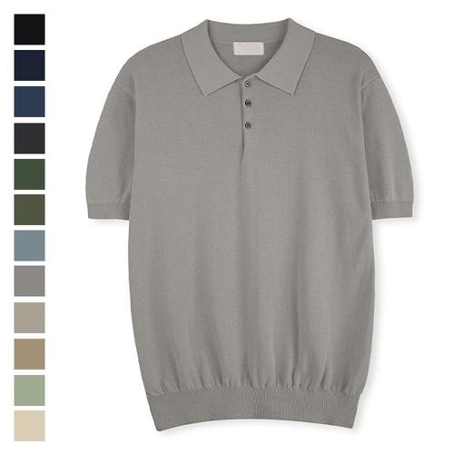 남자 여름 셀럽 버튼카라 린넨 반팔 니트티 SG-KNH-Q010-그레이