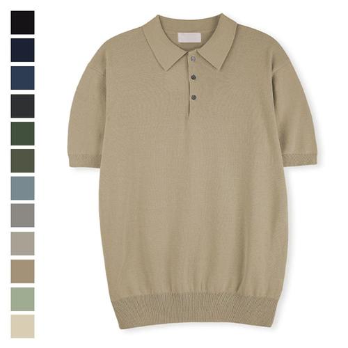 남자 여름 셀럽 버튼카라 린넨 반팔 니트티 SG-KNH-Q010-베이지