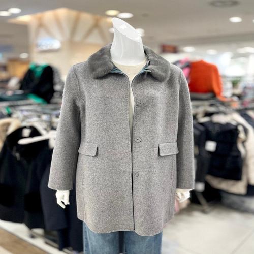 [트리아나]밍크 카라넥 핸드메이드 울 코트 TJ4HA02_GY