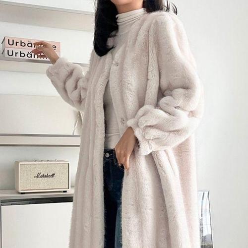 [H.Label] 25WINTER VEGAN FAUX 밍크 후드 롱 코트 1종