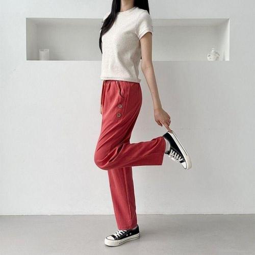 9부 코튼린넨 배기바지 여름 여성 고무줄 밴딩 면바지