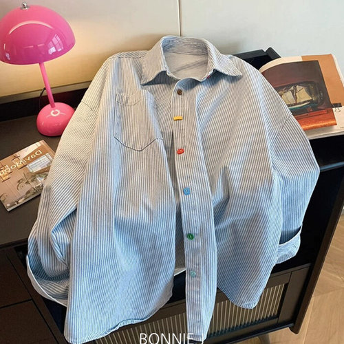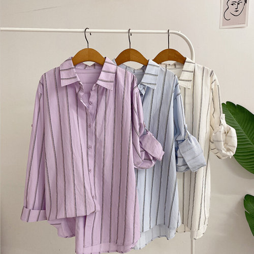 허니제이 / 겐토미 스트라이프 롤업 버튼 긴팔 셔츠(3color)