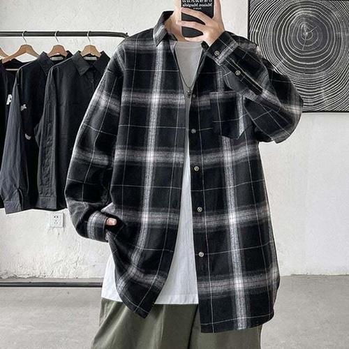 [셀럽하우스]긱시크 OVIB6297 인기 남성 트렌드 봄자켓 감성 긴팔 체크셔츠