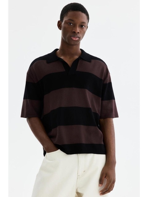 [에이치엔엠] 폴로셔츠 루즈핏 브라운/스트라이프 1331747002