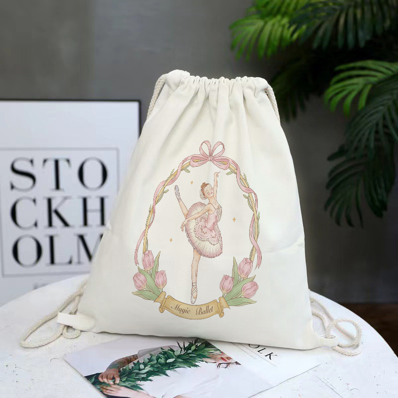 TEMU 1개 이지 백팩 맞춤형 대용량 만화 핑크 갈란드 발레 수납 가방 프린트 패턴 드로스트링 번들 포켓 천 가방 여행 가방 경량 데일리 여행 레저 등산 가방 선물