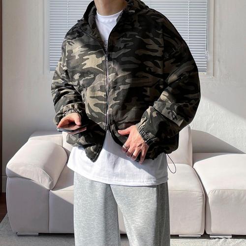 [쿼터]남자 밀리터리 야상 코튼 크롭 카모 후드 집업 자켓