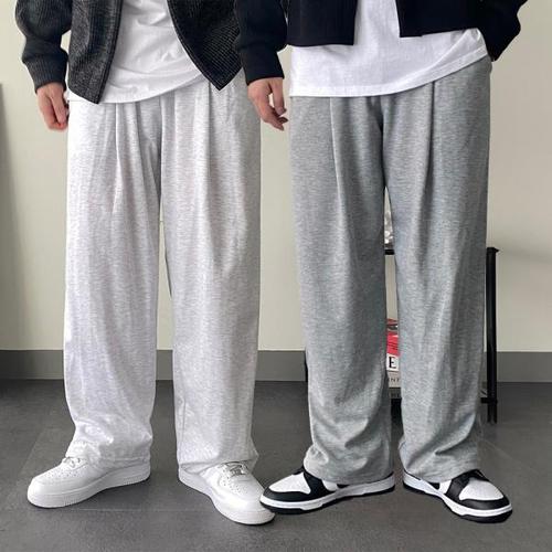 세미와이드 면 츄리닝 순면 트레이닝 바지 면100% 와이드 레그 롱 팬츠 허리밴딩 편한 운동복
