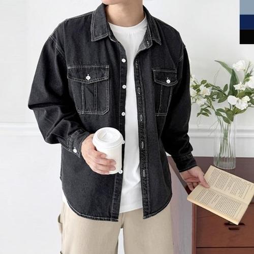 [모노폴로지]3컬러 흑청 청남방 오버핏 루즈핏 데님셔츠 가을 연청 진청 댄디룩