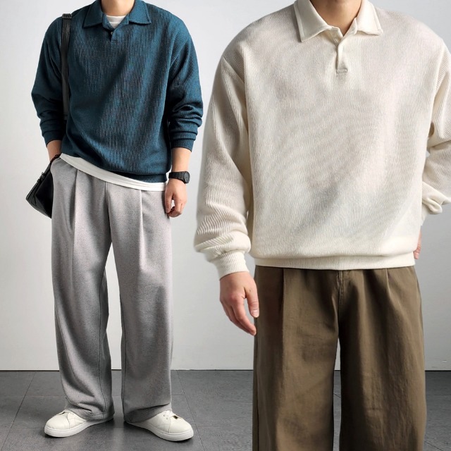 [본보스튜디오]남성 넥라인 배색 입체패턴 카라니트
