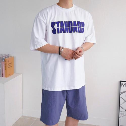 [쿼터]남자 스탠다드 오버핏 프린팅 레터링 반팔티셔츠 2color