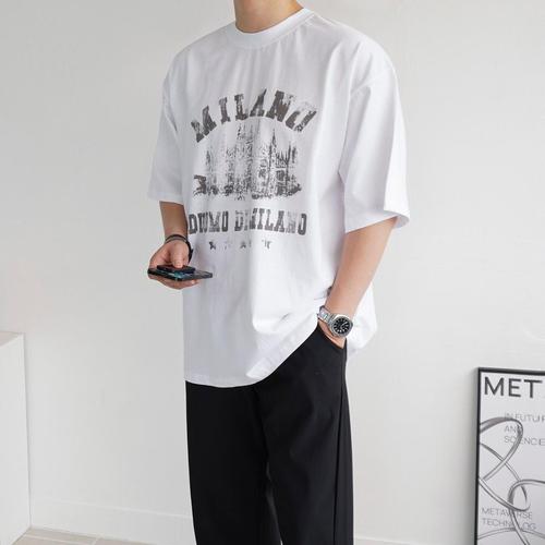 [쿼터]남자 밀라노 오버핏 프린팅 레터링 반팔티셔츠 3color