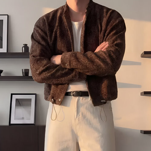 남자 숏 모직 자켓 봄 가을 남성용 빈티지 캐주얼 스타일 라운드넥 트위드 캐주얼 재킷 LCL