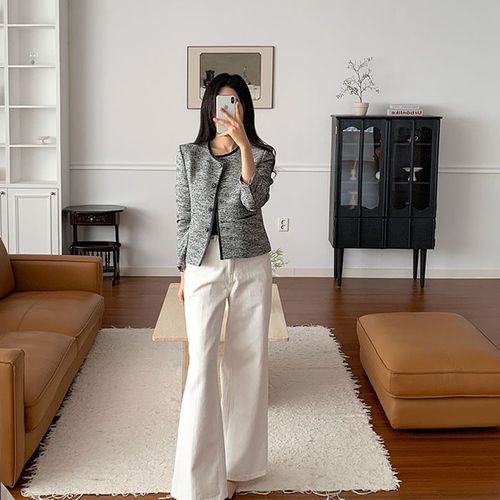 [패션시그널] 라운드 노버튼 트위드 자켓 C8DE77