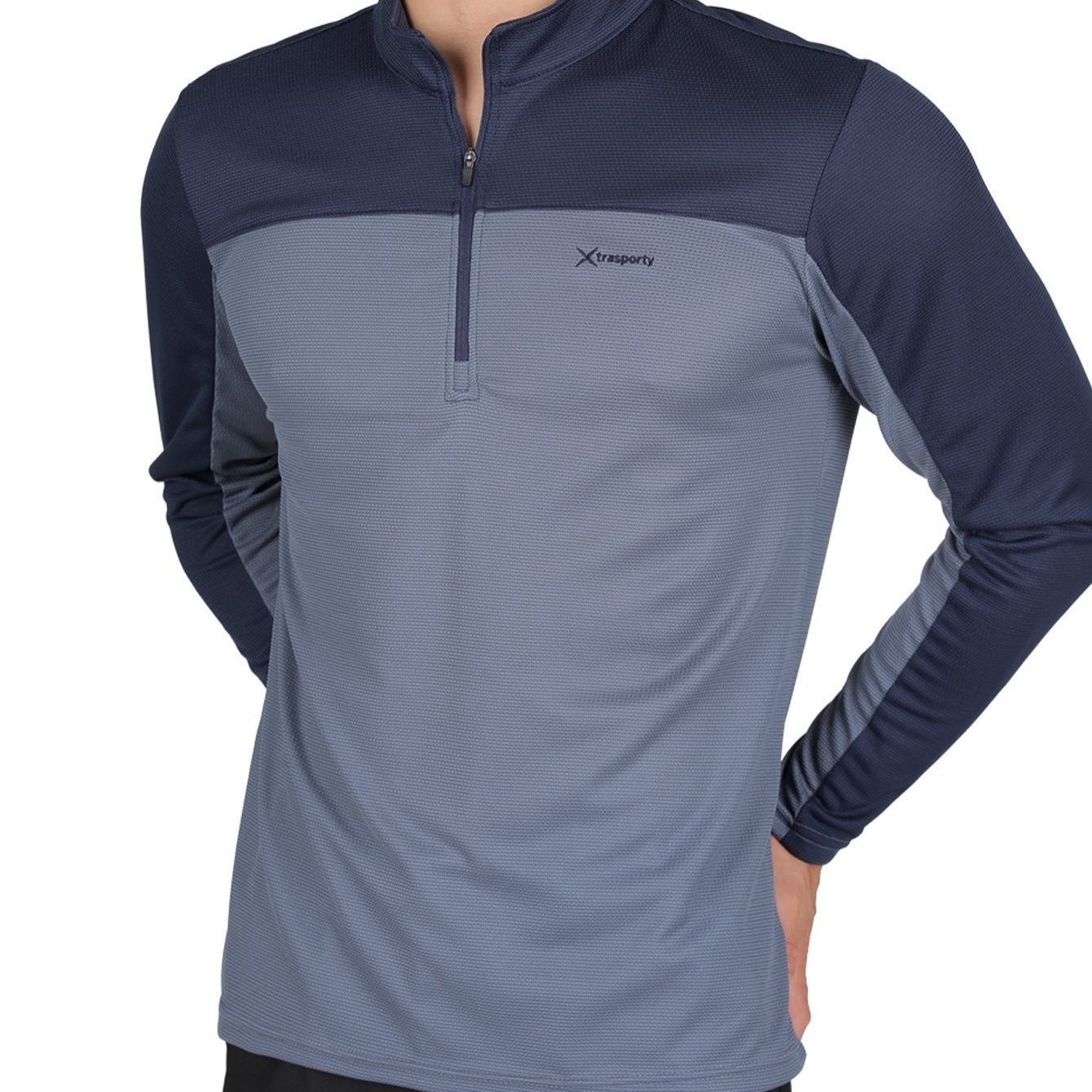TEMU [이지바이] 남성용 멜란지 배색 냉감 긴팔 집업 티셔츠 오션블루 (M5ST21)
