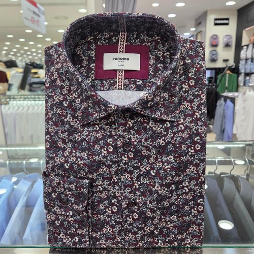 [에스티듀퐁(셔츠)]와인 플라워 프린트 일반핏 긴소매 셔츠 SE5FM11LS203SWN