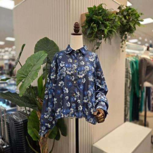 스테파니 HC05 청꽃남방 플라워 꽃무늬 크롭남방 크롭셔츠 A25DM5302