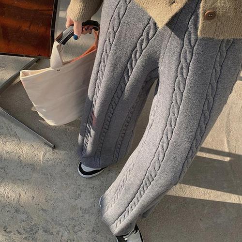 [홀리지]에띠엔 하이웨스트 밴딩 니트 와이드 팬츠