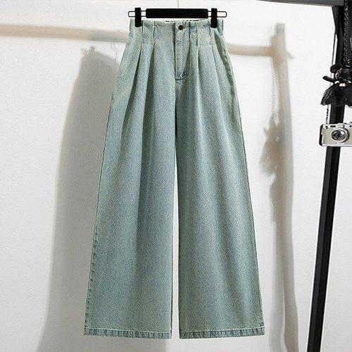 하이웨스트 청바지 체크 디자인 슬림 일자 빅사이즈 와이드 데님팬츠 파란색 S