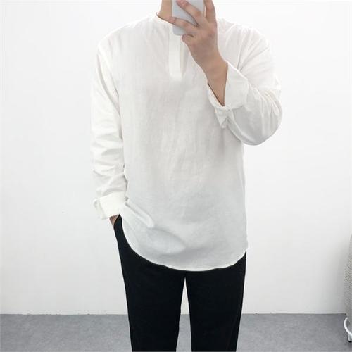 [아날로이드]남자 헨리넥 린넨셔츠 여름 빅사이즈 마셔츠 무지남방_AST12