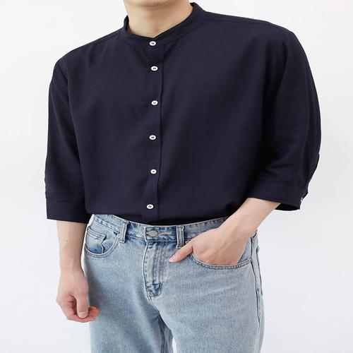 데일리 캐주얼 남성 여름 차이나 카라 린넨 7부 셔츠
