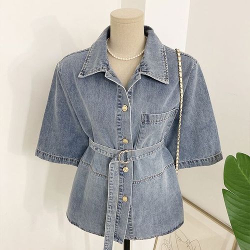 벨트세트/ 보엘린 카라 포켓 루즈핏 7부 청 데님 자켓