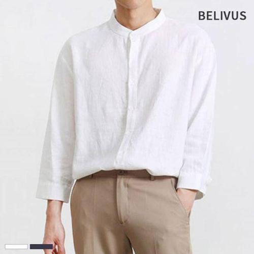 [셀럽하우스]빌리버스 ICXJ6986 남자 여름 린넨 셔츠 BDT189 무지 일반 7부