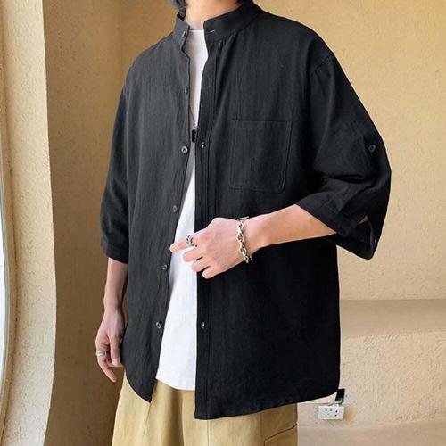 데일리 캐주얼 남성 여름 차이나 카라 린넨 7부 셔츠