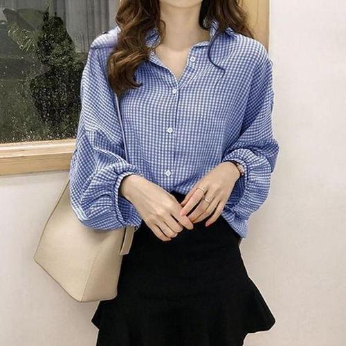 [셀러허브_여성트랜드패션]ONM 여성 블루 깅엄체크 셔츠 루즈핏 데일리 남친룩