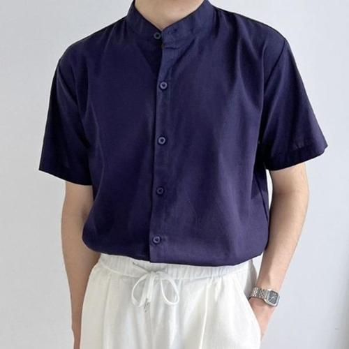 [엄지척]남자 여름 네이비색 린넨 반팔셔츠 데이트 남친룩_20484673_667501