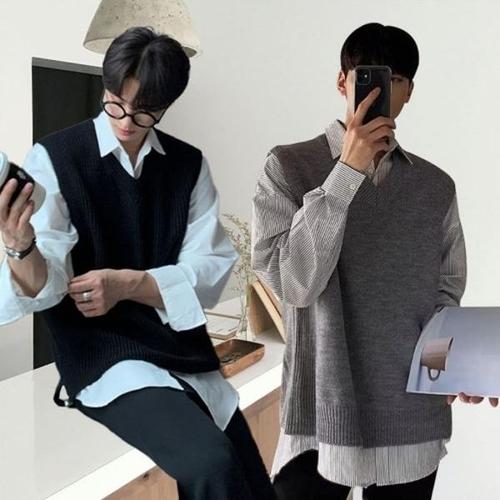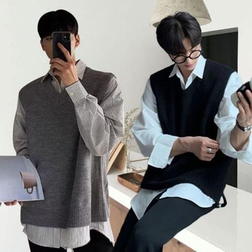 [엄지척]남친룩의 정석 셔츠 레이어드 니트 조끼 댄디 패션_20528725_667501