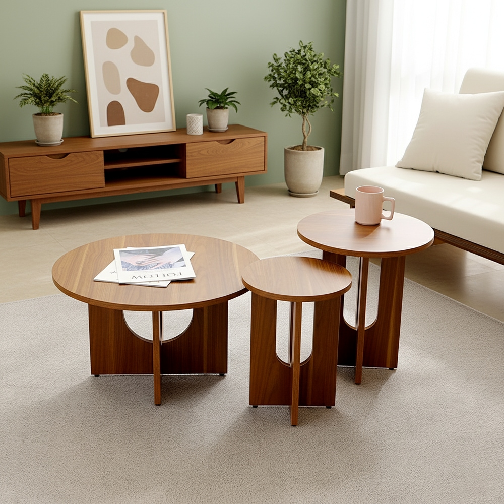 원형 거실 소파 쇼파 보조 사이드 테이블 우드 협탁 낮은테이블 소형 S