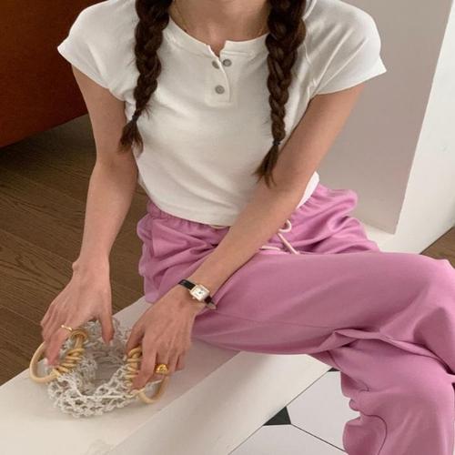 [오노마] ONM 여성 여름 쿨 골지 크롭 반팔티셔츠 냉감 단추 반팔티