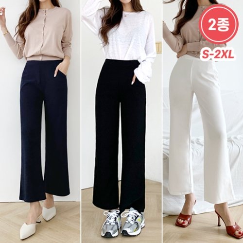 [잘빠진] ★2종세트★ 와이드 일자 밴딩 팬츠 빅사이즈 밴드 일자 바지 3colors 1709
