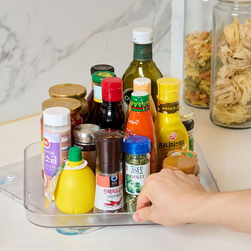 NEW 높은 회전 투명 트레이 높아서 안정적! 360도 회전 양념통 다용도 냉장고 수납정리