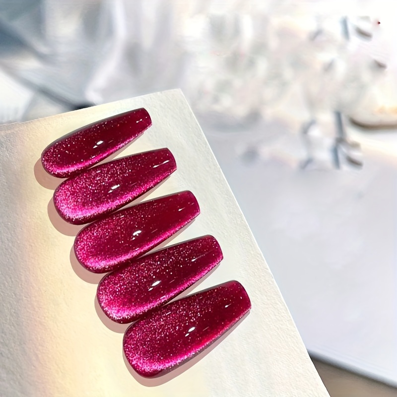 TEMU 긴 아몬드형 블랙 글리터 프레스온 네일 - 손과 발에 적합한 풀커버 인조네일, ABS 팁, 광택감, 겨울용 네일 연장, 유럽 스타일