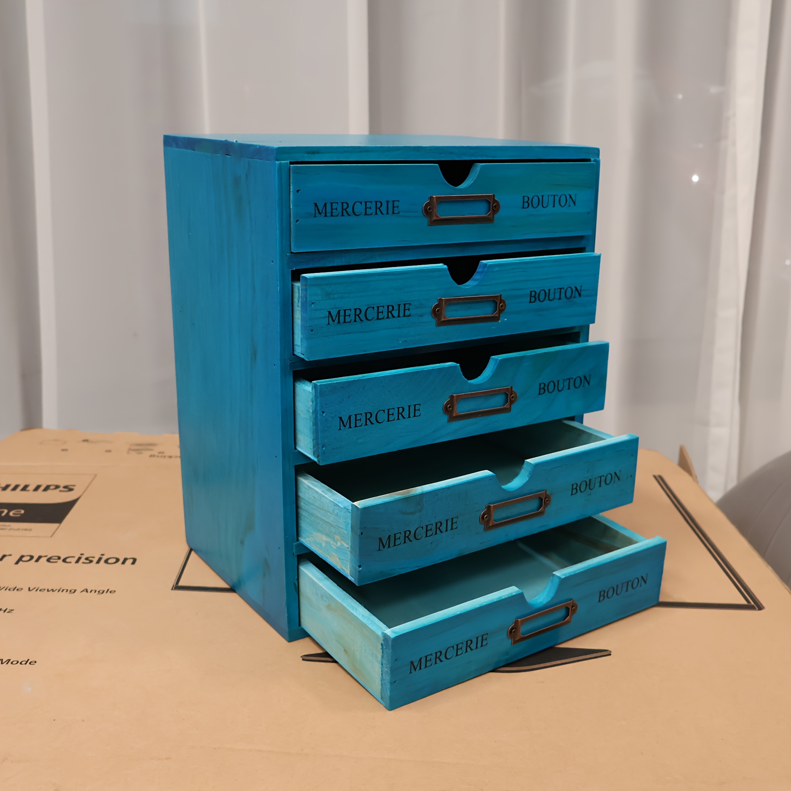 TEMU 1개 고체 목재 5단 서랍장 - 터키스 블루 또는 내추럴 우드 마감, 모던 팜하우스 스타일 컴팩트 서랍장, 공간 절약형 디자인, 골드톤 하드웨어, 조립 불필요, 침실, 거실, 홈오피스 정리용 - 튼튼한 구조와 넉넉한 수납 공간, 소형 공간에 이상적인 서랍장|거실장