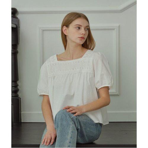 [나인식스뉴욕]스퀘어넥 레이스 장식 반팔 블라우스 (NP2BA025L0)