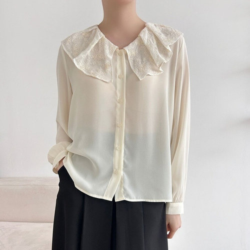 [GGPX]포인트 레이스 카라넥 오버핏 블라우스 (GPCBA044D)