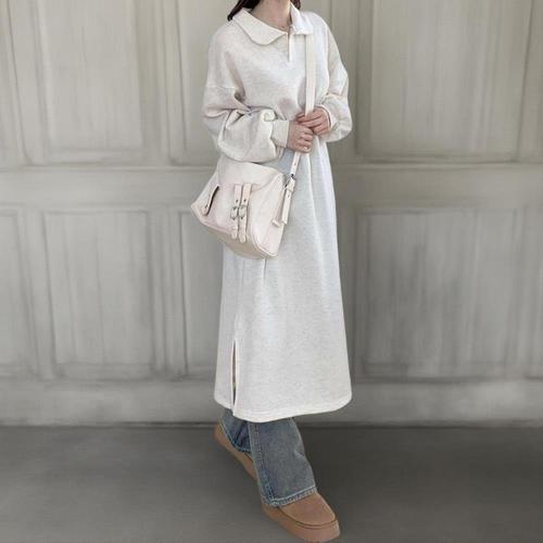 [미라클세븐]여성용 루즈핏 기모 카라넥 롱원피스 무지컬러 캐주얼 드레스