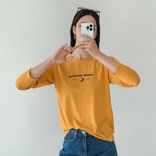 [다잇템][다잇템] 여자 노랑 봄긴팔티 달프린팅 편한 U넥 티셔츠_24432263_588872