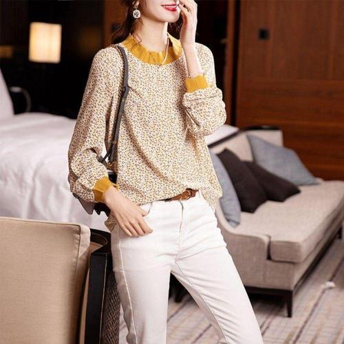 [오너클랜]인기상품 플라워 패턴 루즈핏 여성용 면접용 단정 캐주얼 셔츠 블라우스 노랑 [WFLHYF7_260227]
