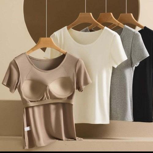 브라캡모달반팔티 모달 캡내장 노브라 일체형 티셔츠