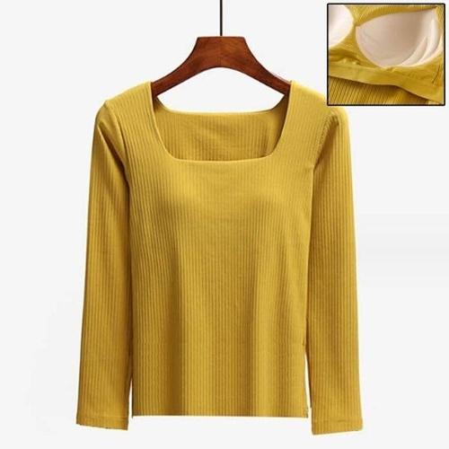 [에이치플러스몰]내장형 긴팔 패드 여성 티셔츠 폴라티 반목 노브라