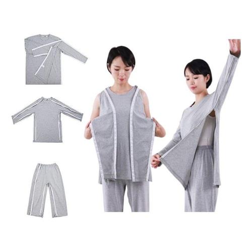 노인 환자용 편안한 검진복 상의 바지 트임 디자인 지퍼 버클