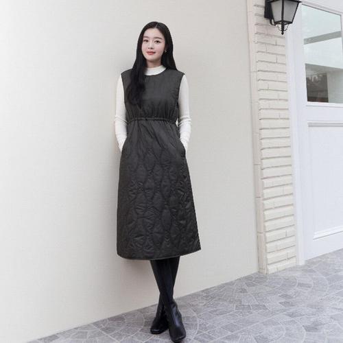 [엘샾] 허리스트링 다이아퀄팅 누빔원피스 가을겨울 패딩롱조끼