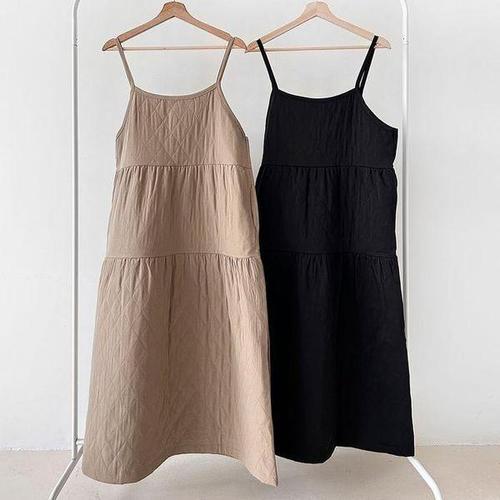 [다잇템_패션]여성 FW 끈원피스 티어드 다이아퀼팅 퀼팅 롱