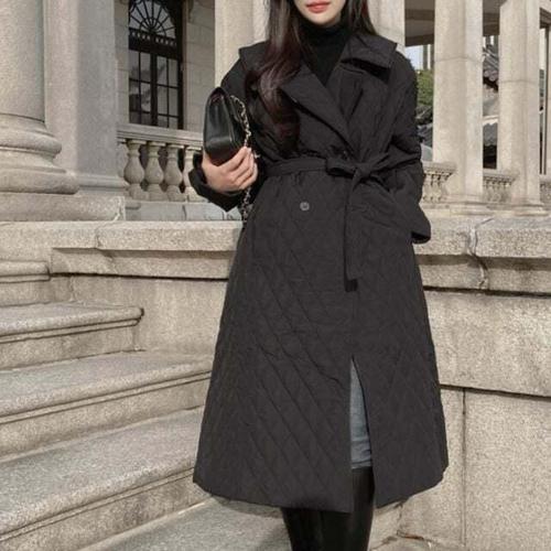 [GGPX]카라넥 벨티드 누빔 롱 코트 (GPDJH001D)