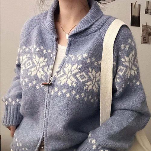 [오너클랜]인기상품 여자 눈꽃 패턴 투웨이 지퍼 니트 가디건 겨울 겉옷 [WFL7DA4_260109]